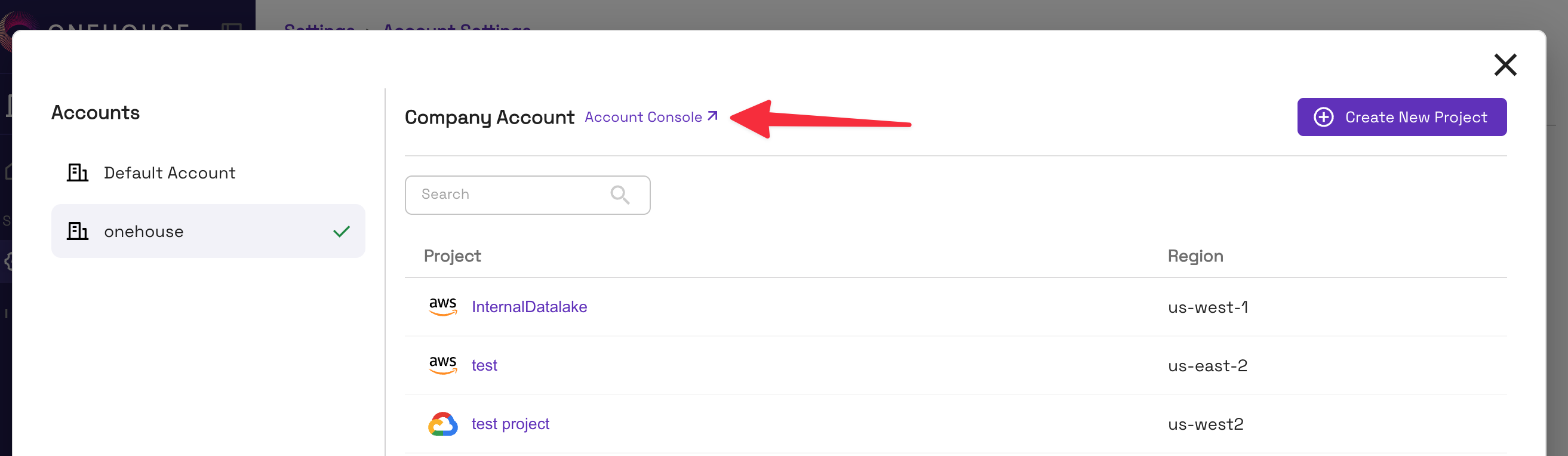 An account is the highest level resource in Onehouse. Each organization can have one account that may contain multiple projects.