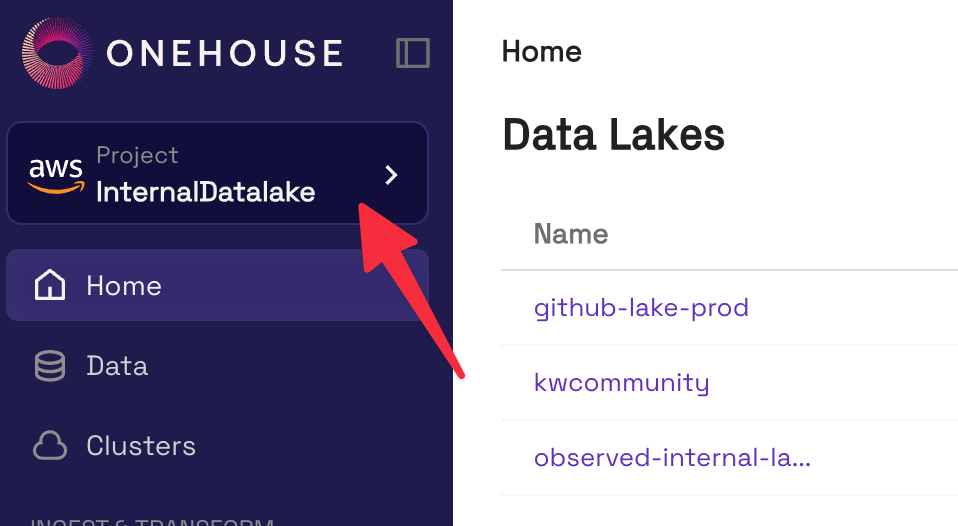 - Open the project switch in the top left corner.